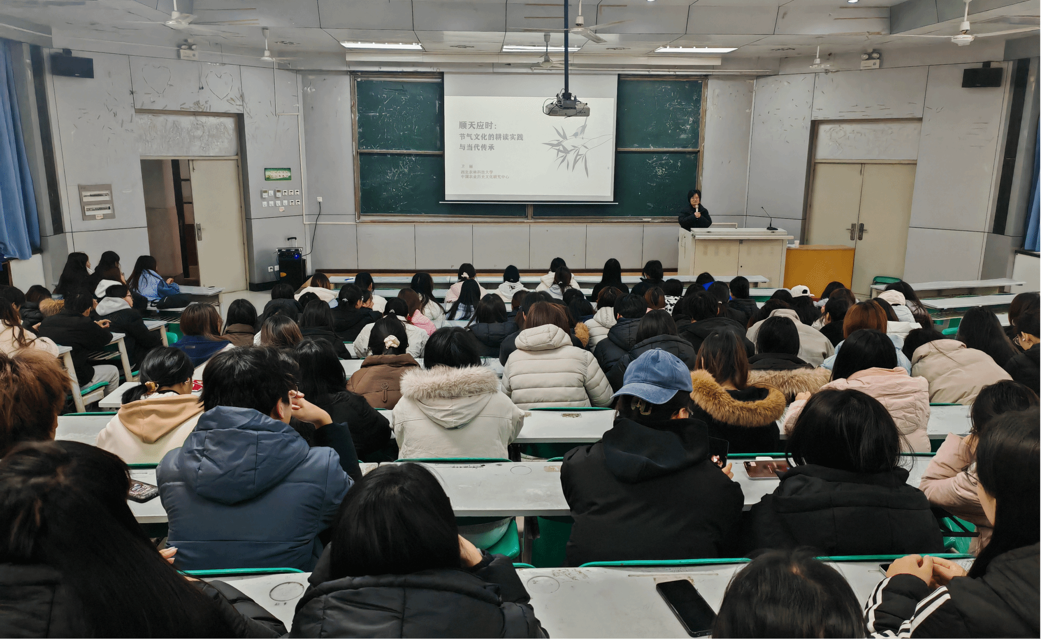 为大力弘扬中华优秀传统文化,2025年12月22日,经济与贸易学院特邀西北农林科技大学人文社会发展学院卫丽副教授为我院学生做了一场以“顺天应时:节气文化的耕读实践与当代传承”为主题的名家讲堂活动,180余名师生共同参与,解锁跨越千年的农耕智慧,探讨传统文化的现代价值。
