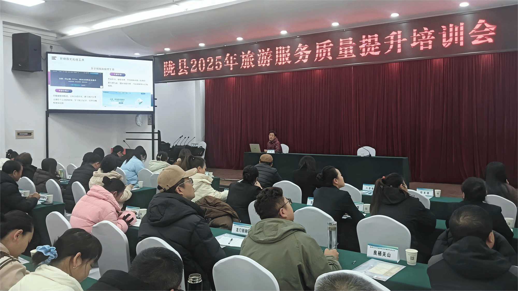 培训中,王洋老师以“新媒体传播与旅游营销实战”“人工智能与数字化在旅游业的应用”及“AI工具现场应用实操”为主题,为陇县各镇分管旅游业务人员、A级景区、星级饭店、特色民宿、旅行社负责人及文旅系统工作人员共计60余人,进行了系统且注重实操的课程分享。他紧扣行业前沿与技术趋势,将理论知识与实际案例相结合,通过生动讲解与现场操作指导,有效提升了学员在新媒体运营、数字化工具应用等方面的实战能力。