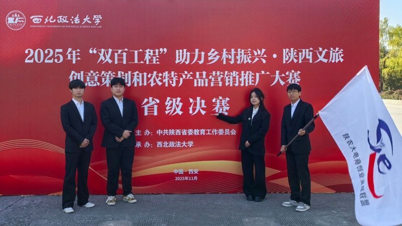 11月29日,2025年“双百工程”助力乡村振兴·陕西文旅创意策划和农特产品营销推广大赛省级决赛在西北政法大学长安校区圆满举办。经过激烈角逐,由我院电子商务专业学生刘可然,陈洋玲,王祉龙,程贤斌组成的参赛团...