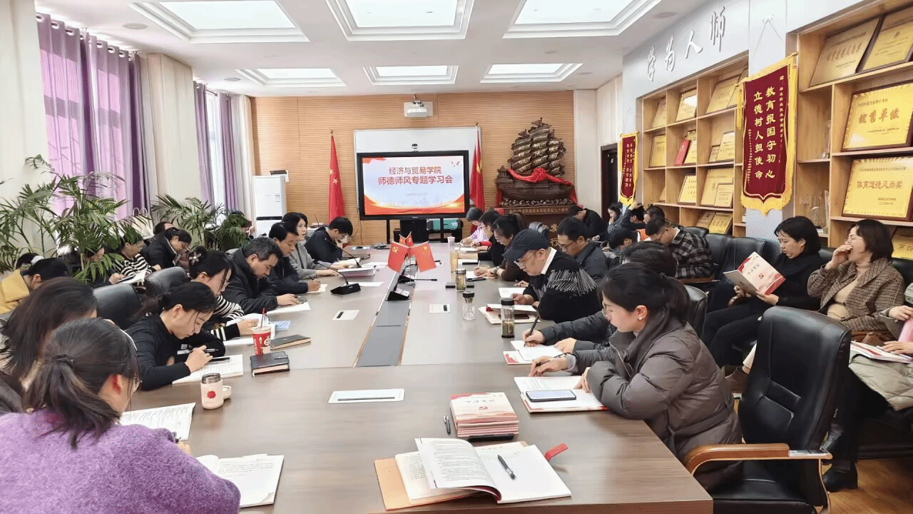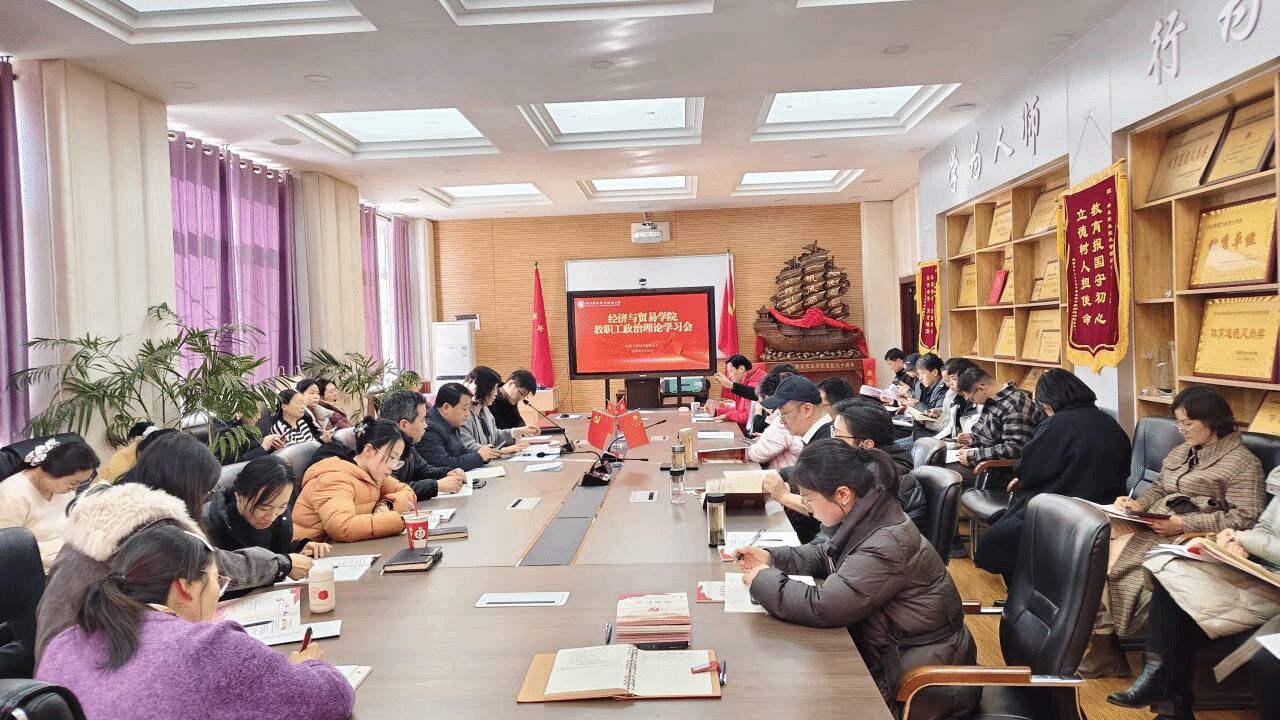 2026年1月12日下午,经济贸易学院党总支组织全体教职工开展政治理论学习。会议由党总支书记蒋霞主持。