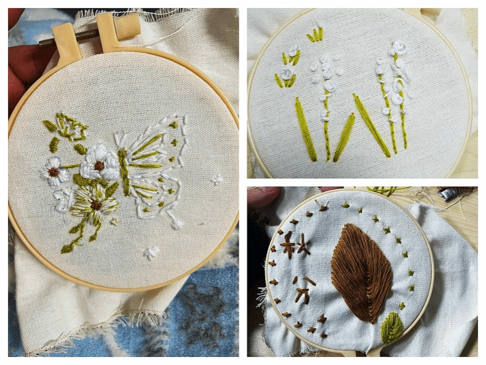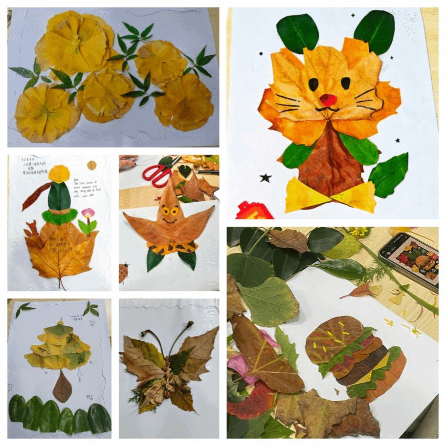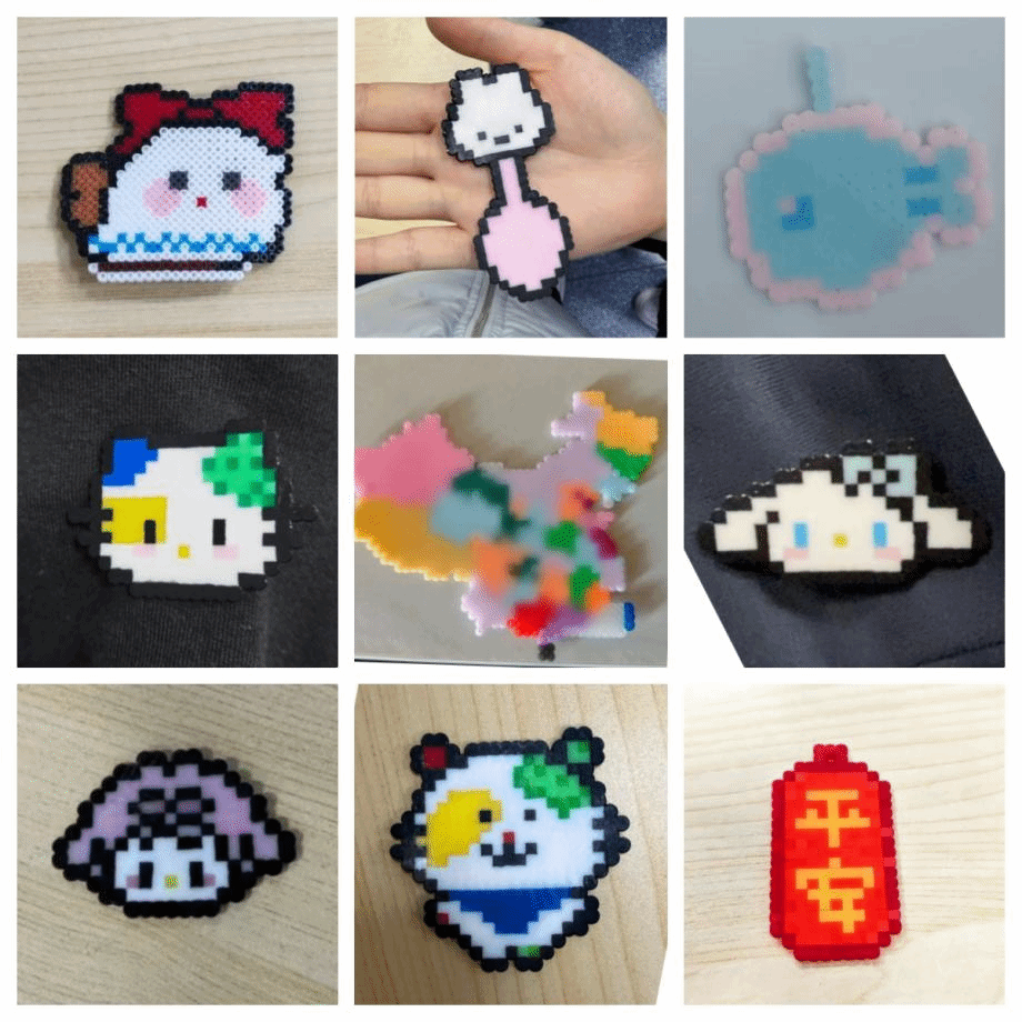 活动现场,各类手工材料整齐摆放,落叶的金黄、拼豆的绚烂、绣线的多彩相映成趣。秋日落叶创造环节中,同学们巧用银杏叶、枫叶等自然素材,通过拼贴、点缀等方式,将其转化为生动的动物造型、诗意风景画,在自然素材再创作中锤炼审美感知力。拼豆环节以 “治愈系” 创作深受喜爱,同学们经耐心排列、熨烫,将彩色豆粒打造成卡通形象、挂饰、杯垫等作品,交流技巧、分享思路间,陌生同学渐次熟络。刺绣环节则尽显雅致,同学们穿针引线勾勒图案,在专注创作中感受传统手工艺的美育价值。