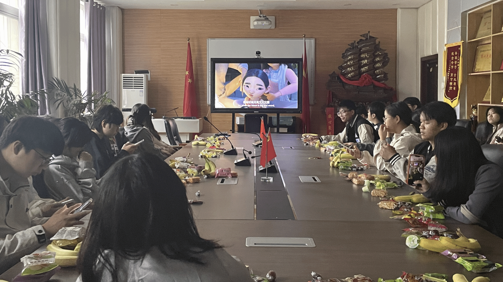 寄语结束后,观影活动正式拉开帷幕。本次播放的中秋主题电影《飞奔去月球》,以奇幻的剧情、唯美的画面讲述了关于梦想与亲情的故事。学子们沉浸在精彩的剧情中,时而欢笑、时而感动,在光影交错间感受节日的美好,也增进了彼此之间的情谊。
