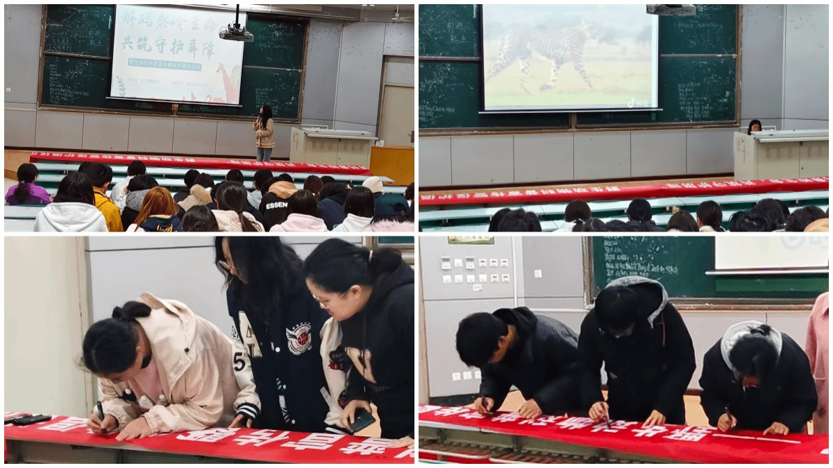 活动现场,科普宣传环节成为一大亮点。通过图文并茂的 PPT 展示、生动的案例讲解以及珍稀野生动物视频展播等多种形式,向学生系统介绍了秦岭地区的生物多样性现状。从憨态可掬的大熊猫、灵动敏捷的金丝猴,到珍稀罕见的朱鹮、羚牛,讲师详细解读了这些旗舰物种的生活习性、生存现状以及面临的威胁,让大家深刻认识到秦岭作为“中国中央公园”的生态价值,以及保护野生动物对于维护生态平衡的重要意义。互动问答环节中,学生们踊跃提问,围绕 “如何在日常生活中践行野生动物保护”“秦岭生态保护的政策支持” 等问题展开深入交流,现场学习氛围十分浓厚。