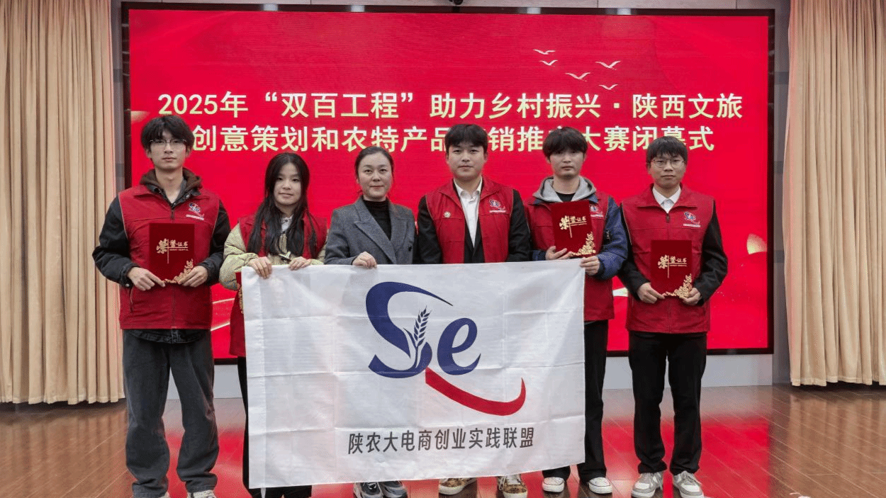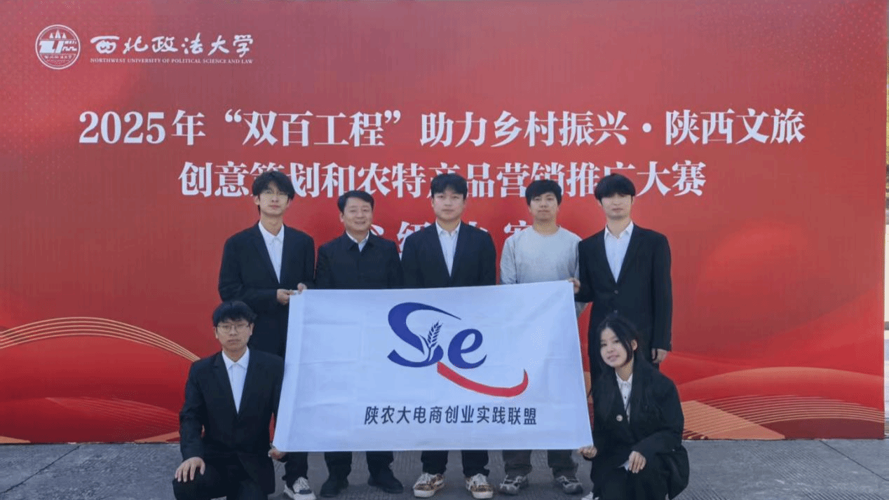 11月29日,2025年“双百工程”助力乡村振兴·陕西文旅创意策划和农特产品营销推广大赛省级决赛在西北政法大学长安校区圆满举办。经过激烈角逐,由我院电子商务专业学生刘可然,陈洋玲,王祉龙,程贤斌组成的参赛团队荣获一等奖。