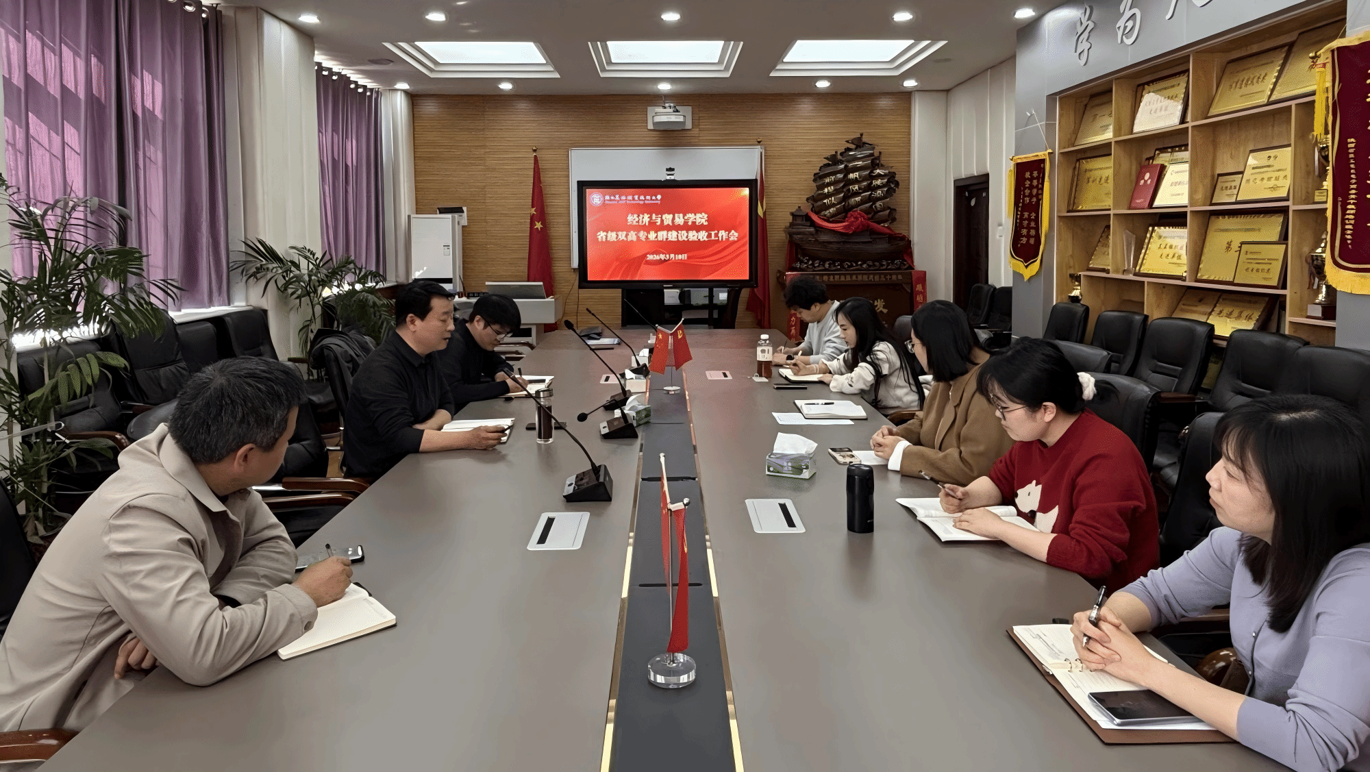 3月10日下午,经济与贸易学院召开推进省级“双高计划”电子商务专业群建设验收工作会,院长郑伟、办公室主任杜龙、实训科副科长常钢华及工作专班全体成员参会。