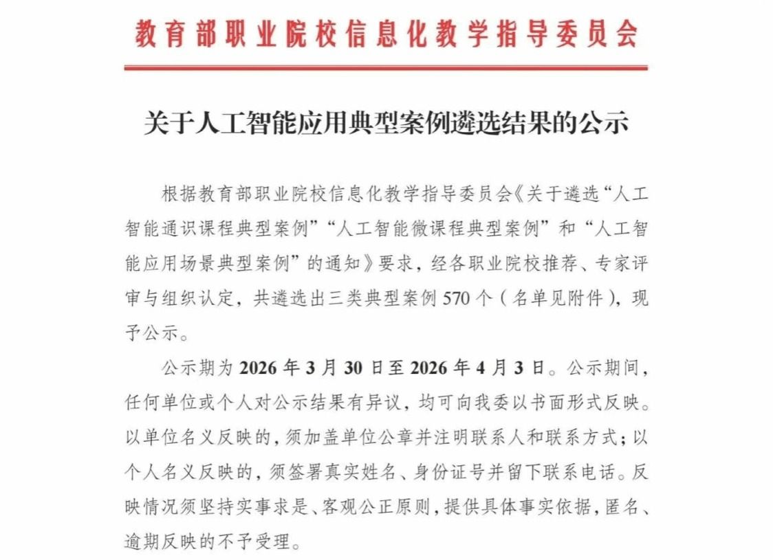 本次案例遴选旨在深入推进人工智能技术与职业教育教学改革深度融合,挖掘一批具有创新性、示范性、可推广性的教学案例。经层层筛选、严格评审,我院王洋老师的《数字化选品与虚实场景搭建》案例凭借鲜明的专业特色、扎实的实践基础和显著的育人成效脱颖而出,成功入选公示名单。王洋老师紧密结合电子商务行业前沿发展趋势,将人工智能技术深度融入选品决策、虚拟场景构建等核心教学环节,充分体现了电子商务专业群“数智引领、虚实结合”的建设理念。