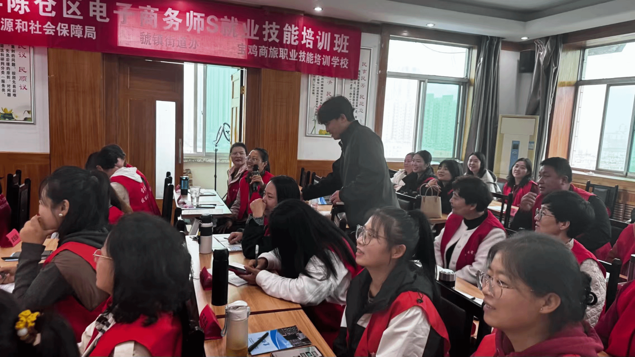 为积极响应国家关于推动数字经济与实体经济深度融合的号召,服务区域电商产业提质增效,2025年10月14日至19日,学院教师王洋、权李之及电商创业联盟负责人刘可然同学,应宝鸡市陈仓区人力资源与社会保障局邀请,赴宝鸡市商旅技能培训学校,为“2025年陈仓区电子商务师S技能培训班”提供了为期六天的系统化、专业化培训。本次培训面向社会公开招募的100余名电商从业者,聚焦电商运营综合技能提升,内容涵盖短视频制作、直播带货、粉丝运营及AIGC技术应用等前沿领域,取得了显著成效。