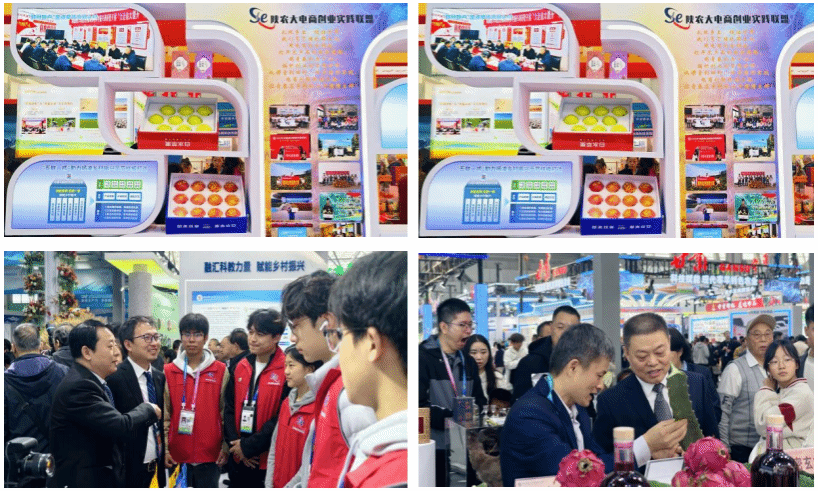 10月25日,在第32届中国杨凌农业高新科技成果博览会上,陕农大电商创业实践联盟以“智慧电商赋能,联动乡村振兴”为核心,以“双百工程助农强农”为支撑,采用“线上直播引流+线下实景推广”双线推广模式赋能农业发展,实现农产品带货与平台宣传双重突破,展现出大学生创业团队的青年活力与专业素养。