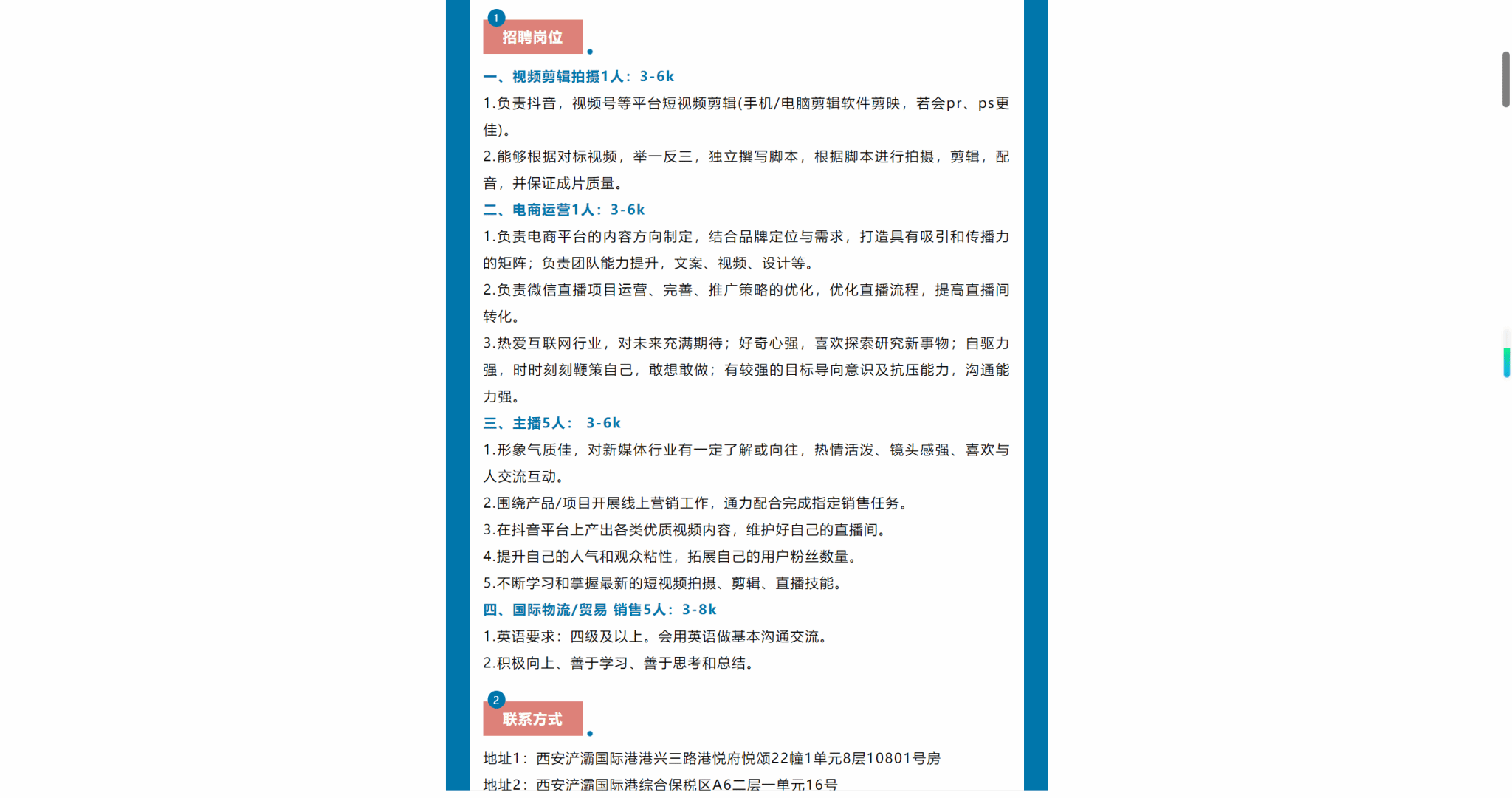 安安探企 | 西安浐灞国际港企业招聘信息专栏(一百二十二)