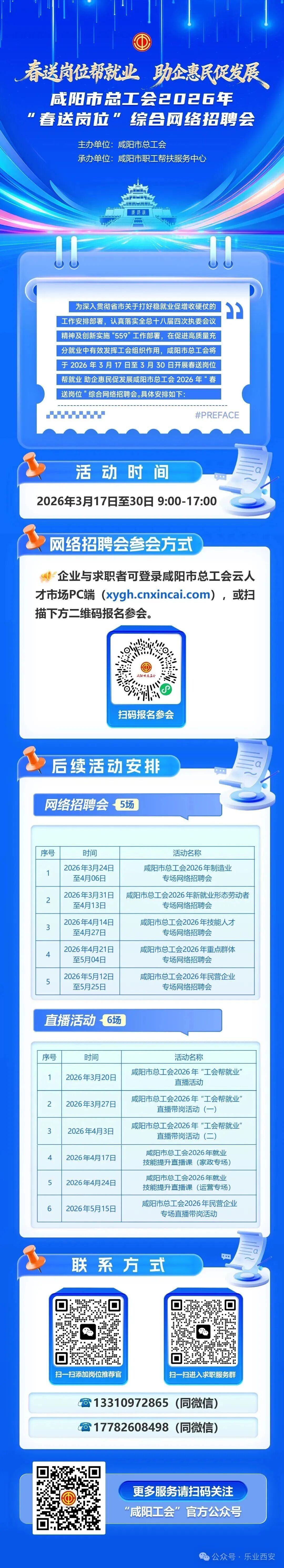 咸阳市总工会 2026 年网络招聘会(第一期)