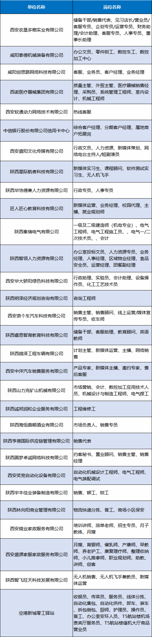 招聘岗位及企业名单